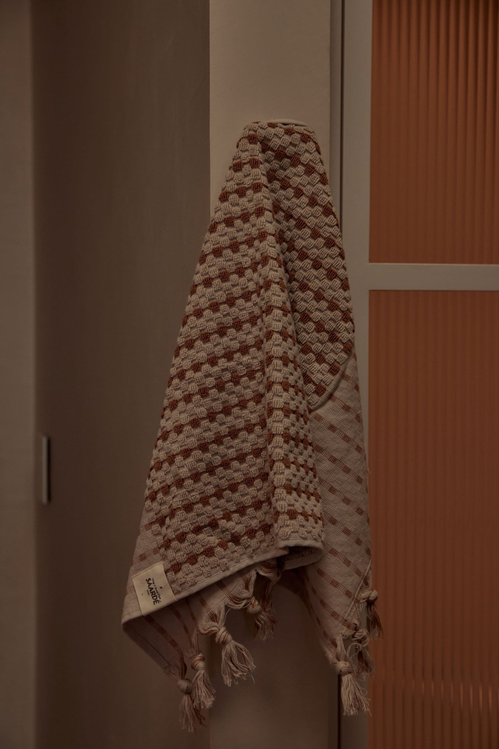 The Stone/Terracotta Chickpea towel collection, made from premium quality 100% Turkish cotton that is OEKO-TEX® Standard 100 certified.