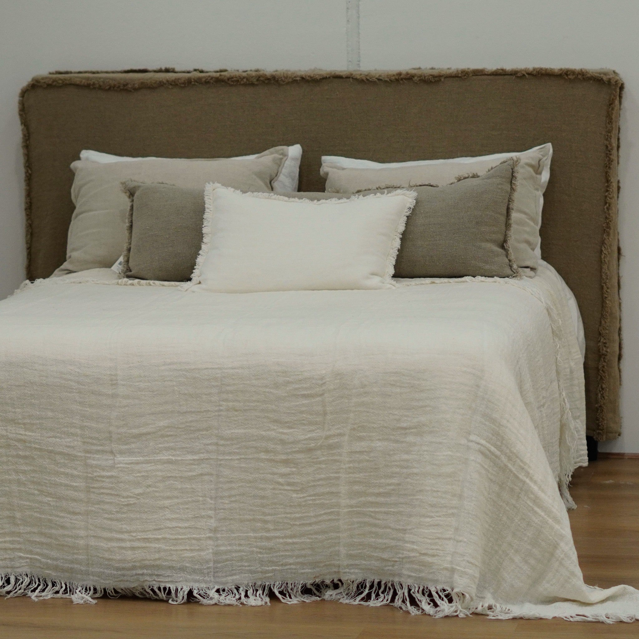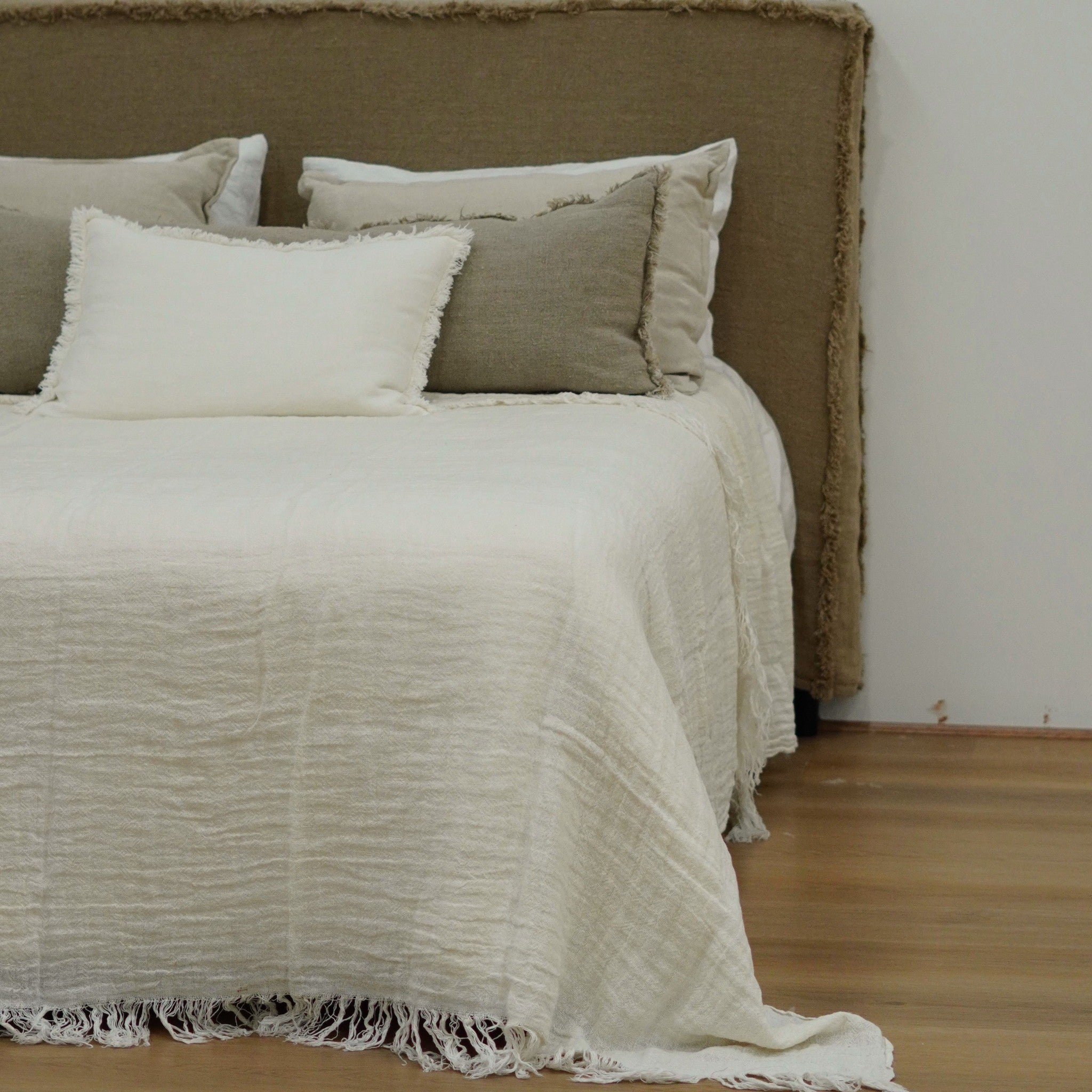 The Grange Bedcover brings relaxed elegance and beautiful texture to your bedroom. Softly woven and finished with a delicate fringe edge, it drapes effortlessly for a calm, inviting look.