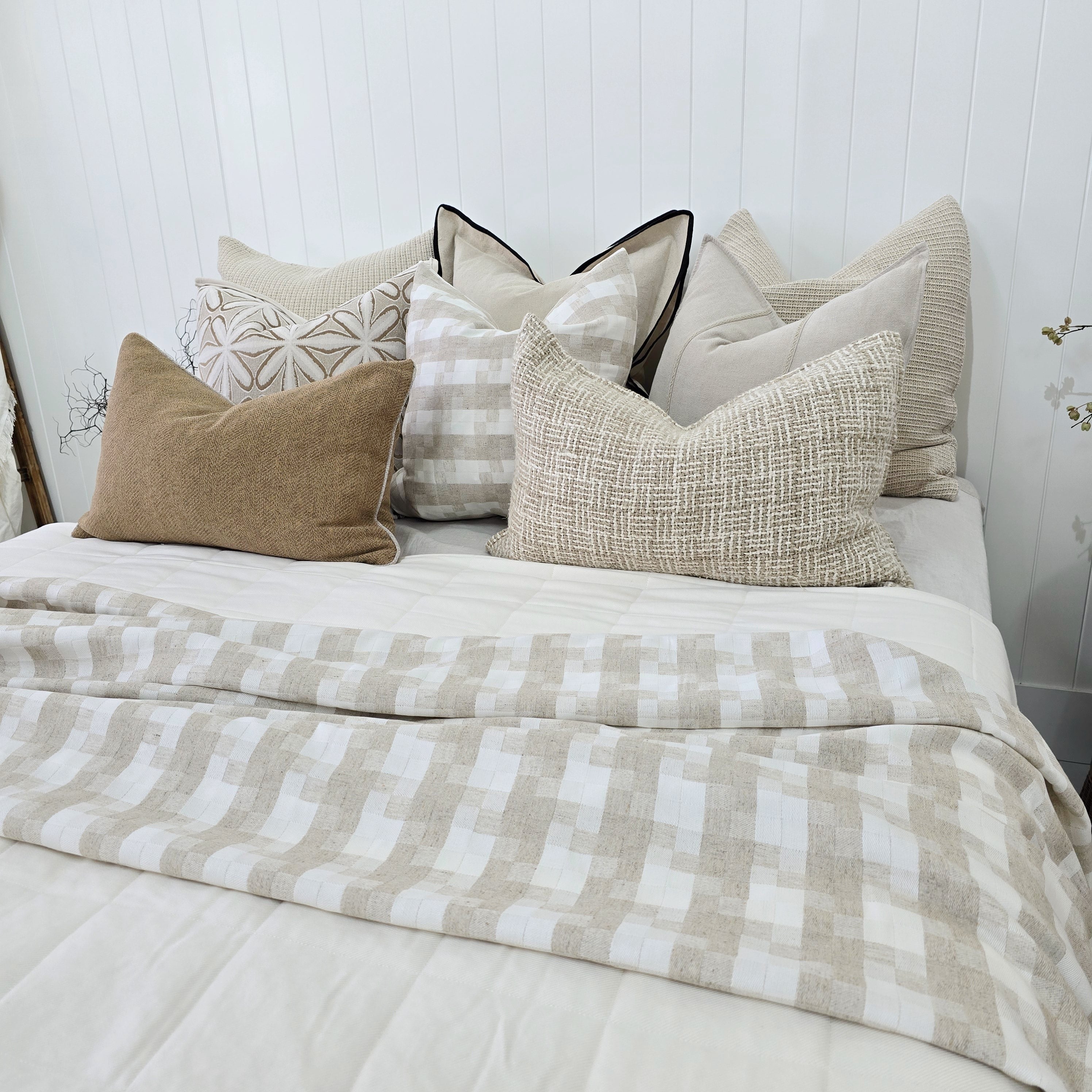 The Isla Jacquard Bedcover brings effortless luxury to your bedroom with its beautiful blend of linen and cotton. Soft, breathable, and generously sized at 200 x 230cm, it features a subtle jacquard pattern that adds gentle texture and timeless elegance to your space.