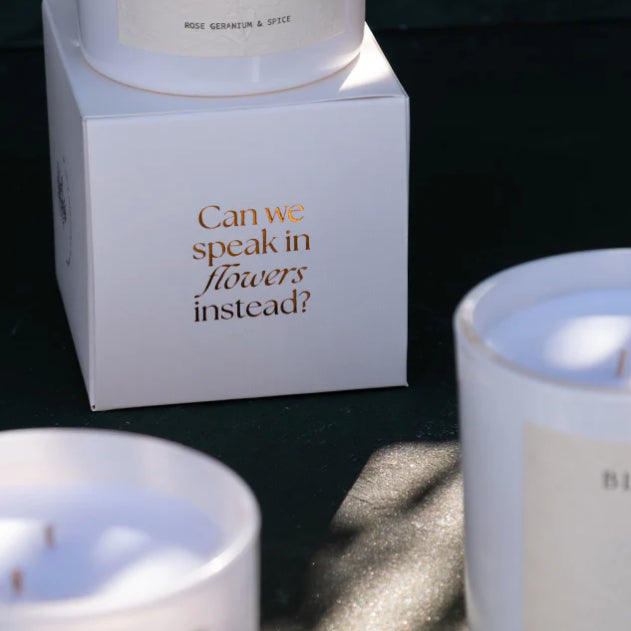 Infused with a warm, grounding blend of rose geranium and spice, this 400g (14.1oz) soy candle is hand-poured in Australia and offers up to 80 hours of soothing fragrance.