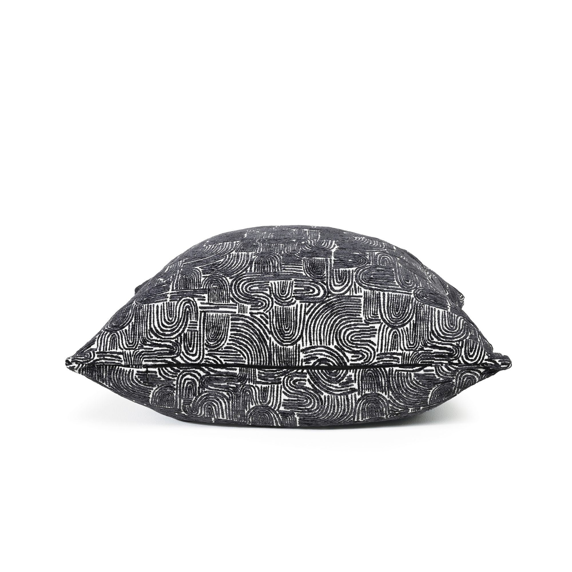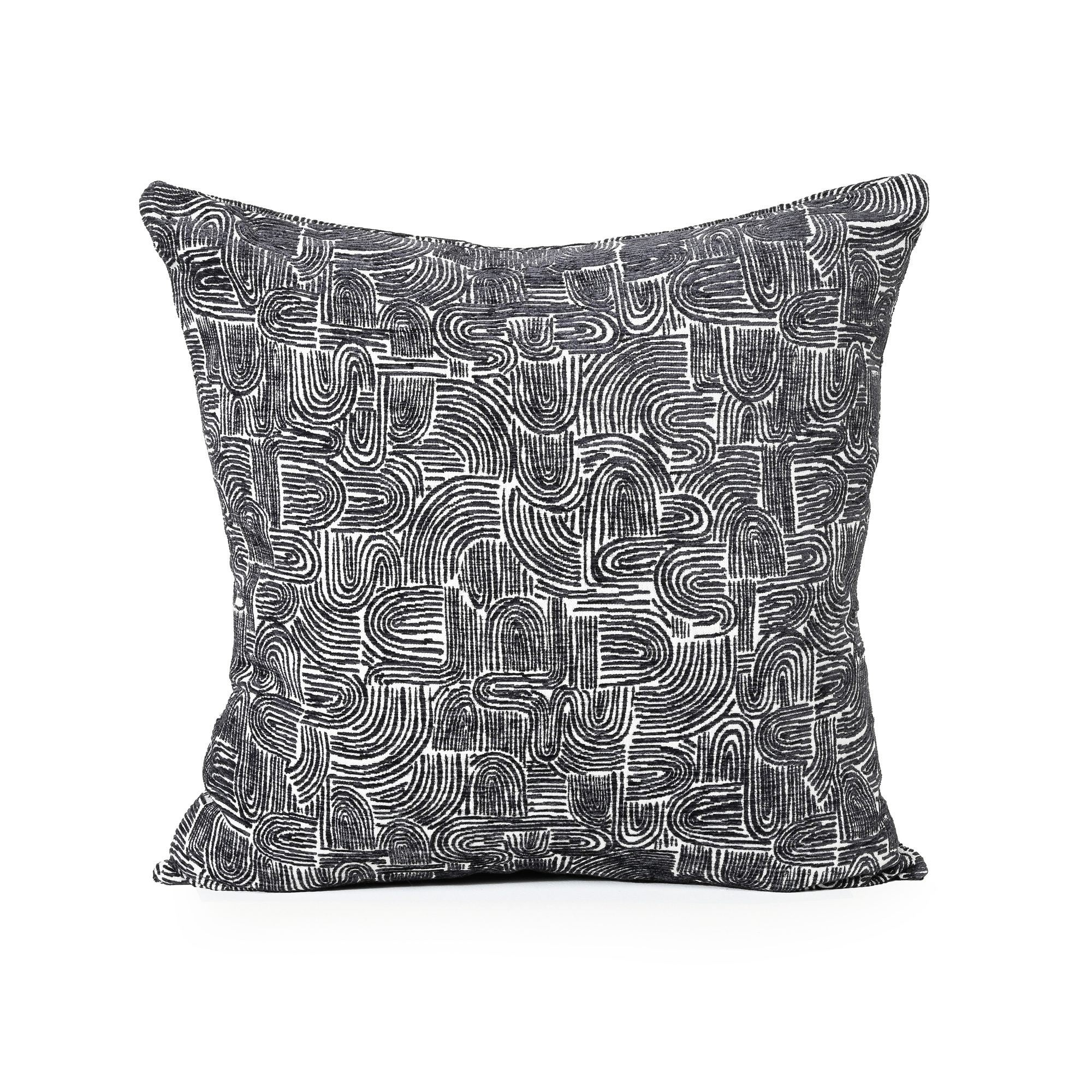 A charcoal velour swirl pattern woven onto a wheat coloured linen textured base. Look no further for the perfect charcoal swirl square cushion including feather fill.