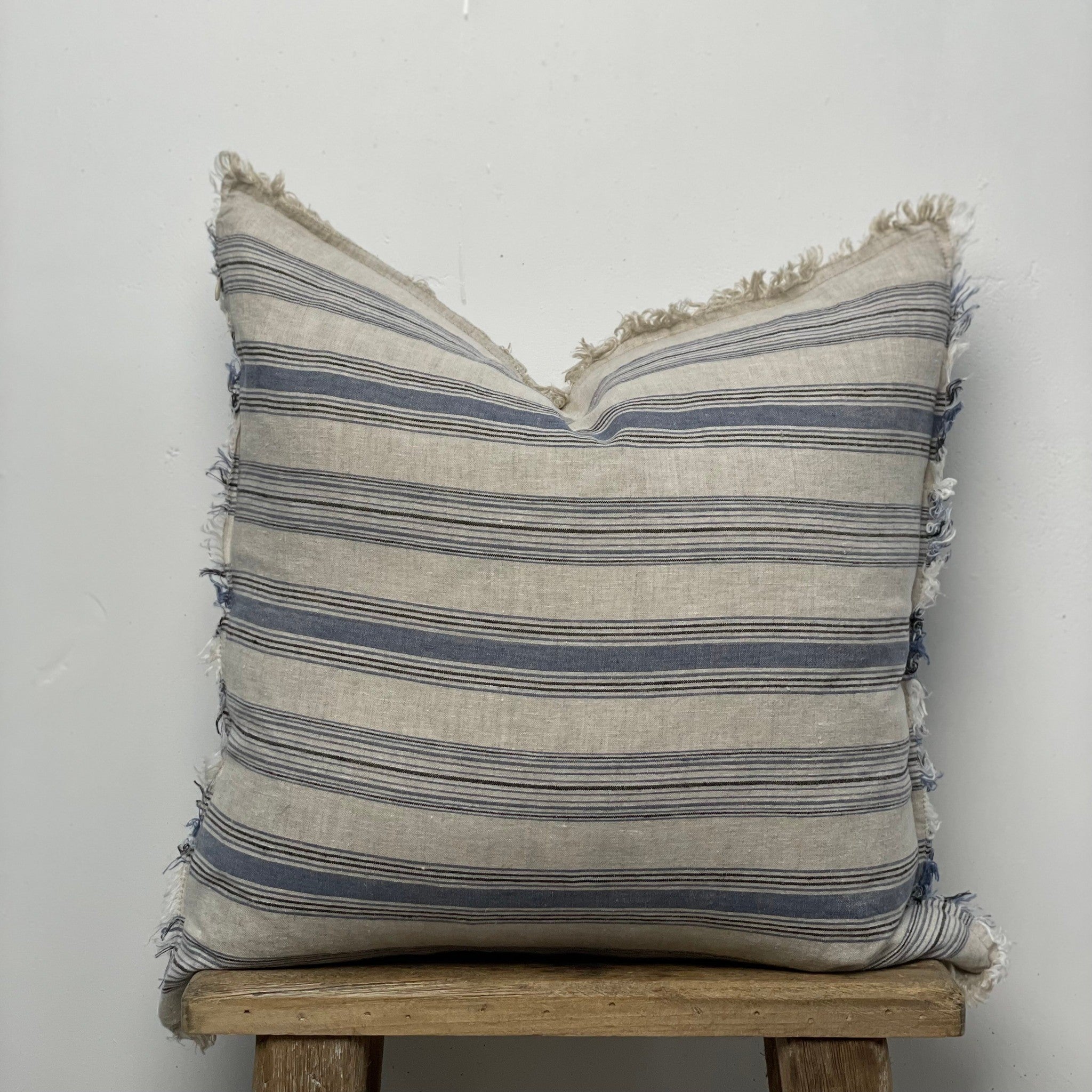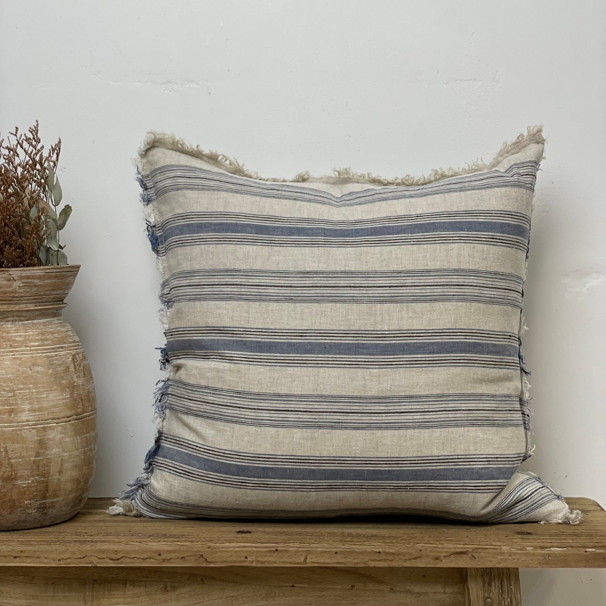 The Erika Cushion blends coastal ease with artisanal detail. Featuring a Blue Horizon stripe and finished with soft fringing, this design adds texture, movement, and a relaxed yet refined feel to your styling. Perfect for layering on sofas, beds, or occasional chairs, it brings a fresh, breezy touch to any room.