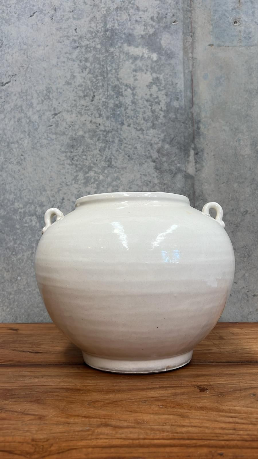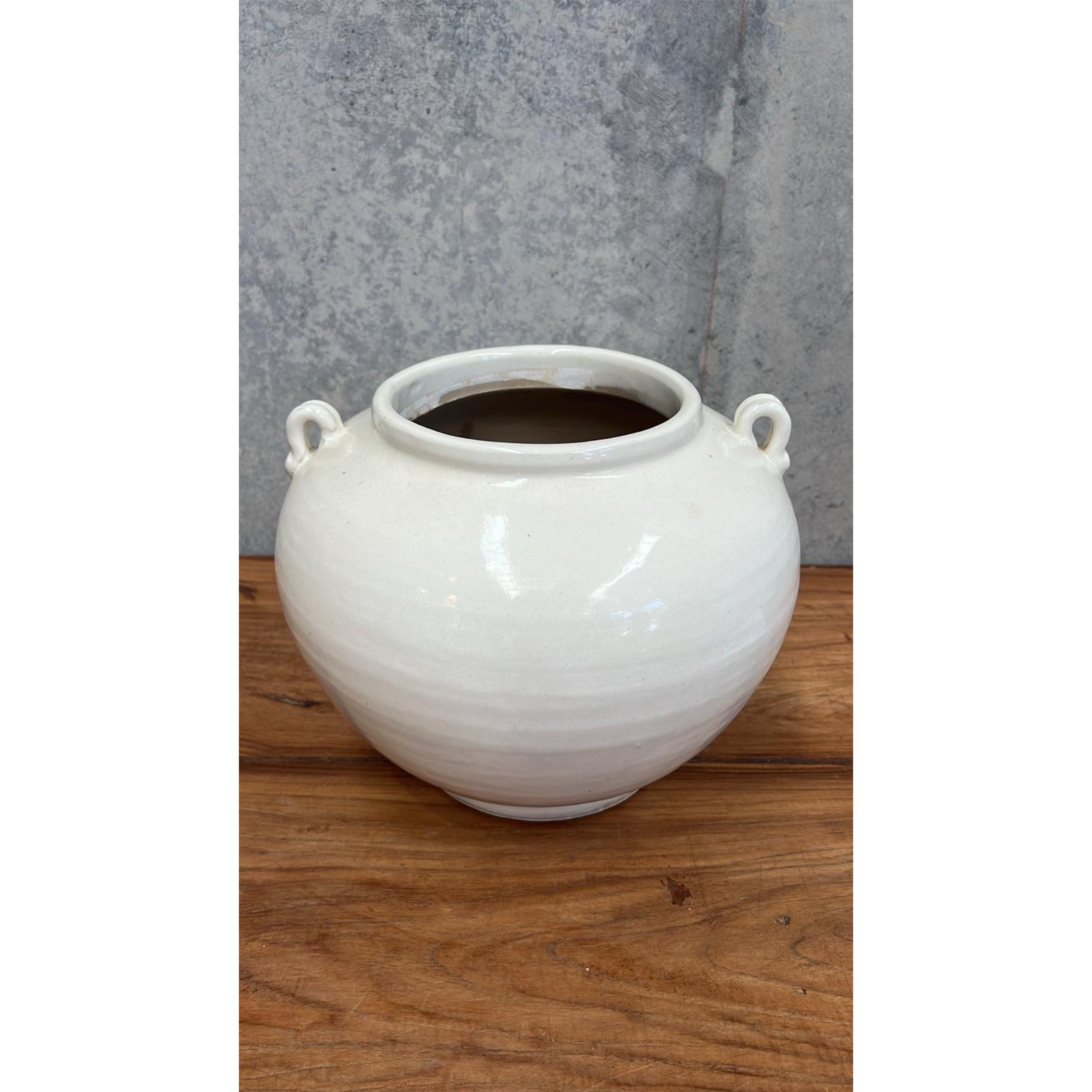 Full of character and traditional charm, the Chinese Glazed Pot with Handle is a beautifully aged piece that brings warmth and authenticity to any space. Featuring a classic glazed finish and distinctive side handles, its timeless silhouette makes it a versatile styling piece for both indoor and outdoor settings.