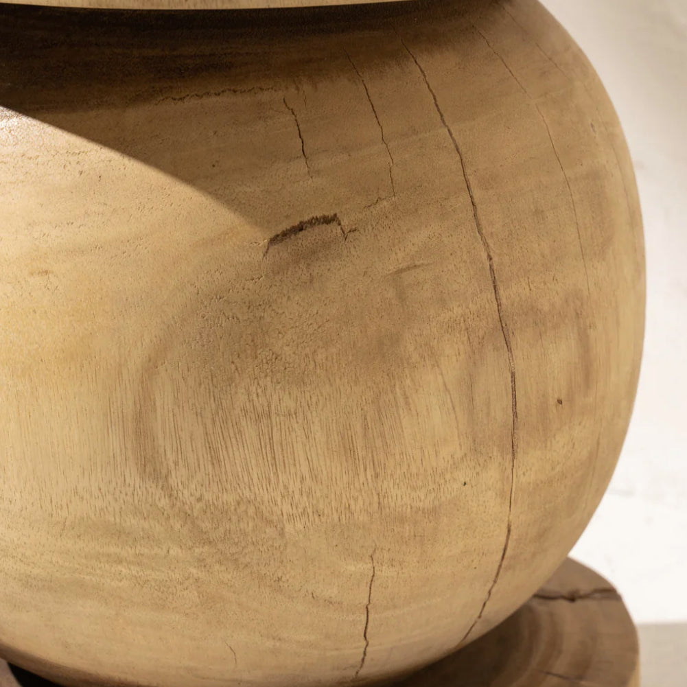 Each piece is meticulously handcrafted from Suar wood—a sustainably sourced fruit tree known for its durability, naturally rich oils, and stunning variation in tone and grain. With a smooth raw finish, these stools or side tables highlight the wood’s organic character, from unique textures to naturally flowing shapes and color contrasts.