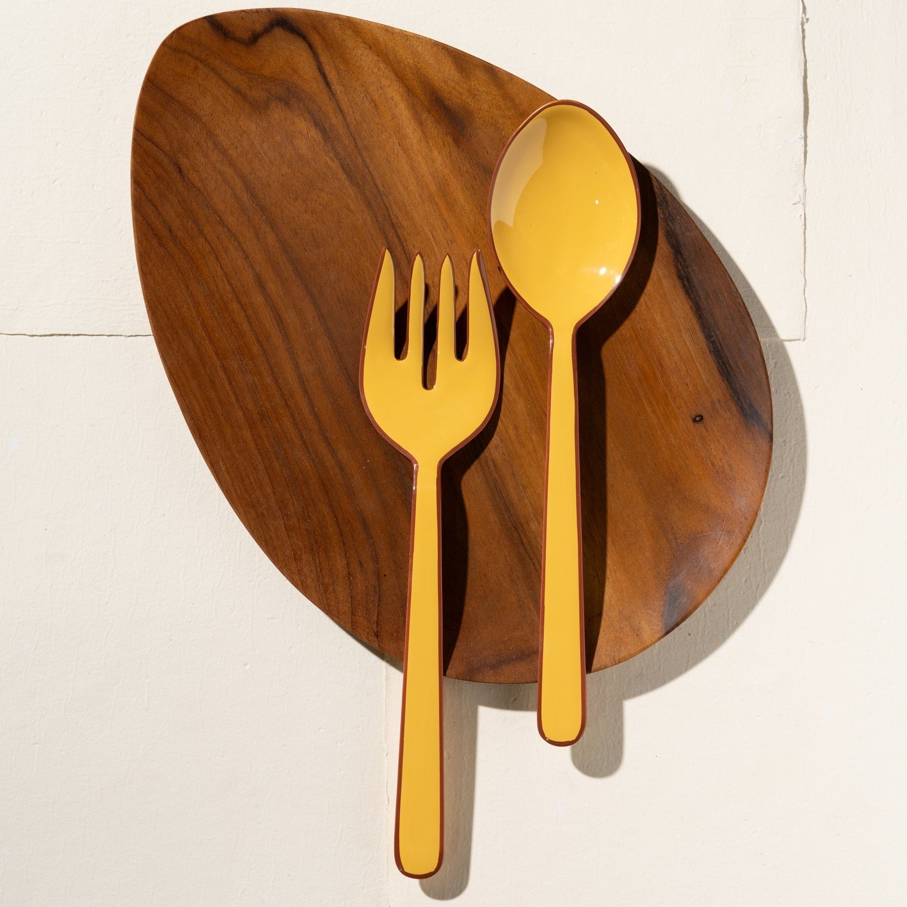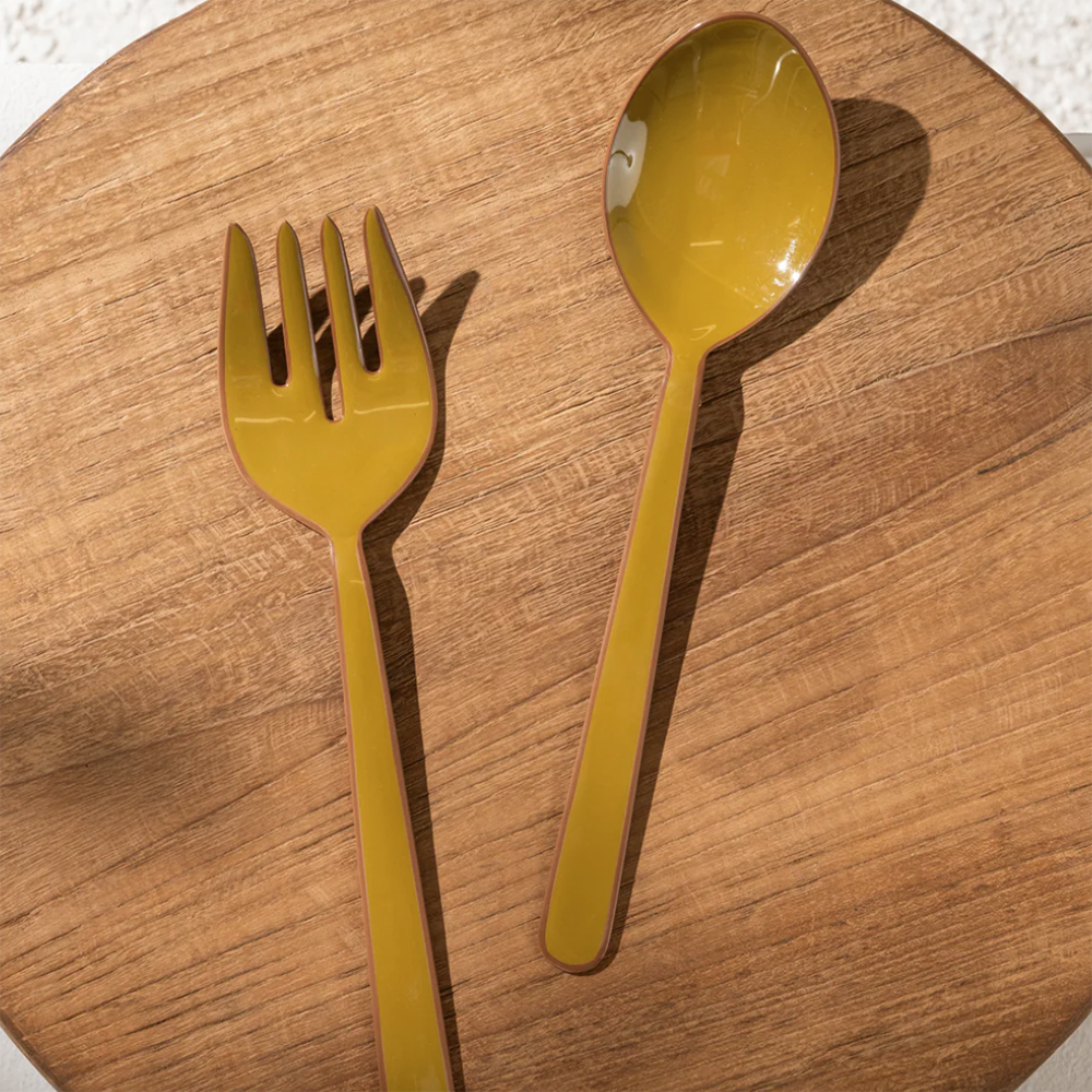 Add a touch of artisanal charm to your table with these handcrafted salad servers, made in India from high-quality stainless steel and finished with a vibrant enamel coating.