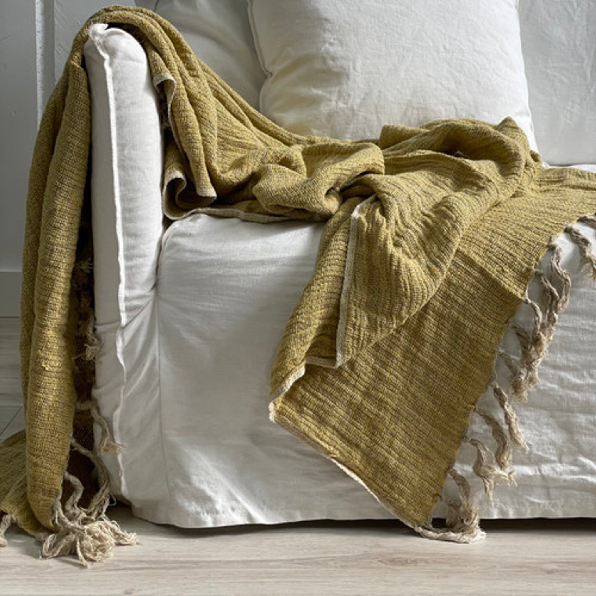 Add effortless warmth and texture to your home with the Audrey Linen Throw in Yellow + Natural. Crafted from beautifully soft, breathable linen, this throw features a relaxed weave and a timeless dual-tone palette. Perfect for draping over a sofa, layering on the bed, or adding a cosy, lived-in feel to any room, it’s a versatile piece that brings comfort and understated style to your space.