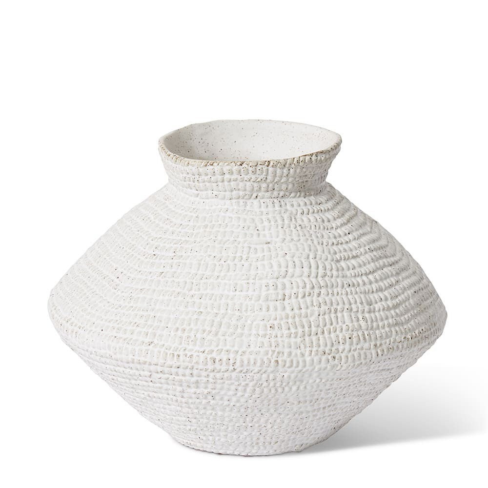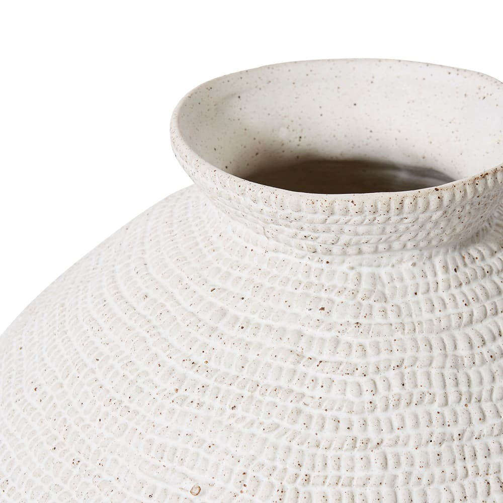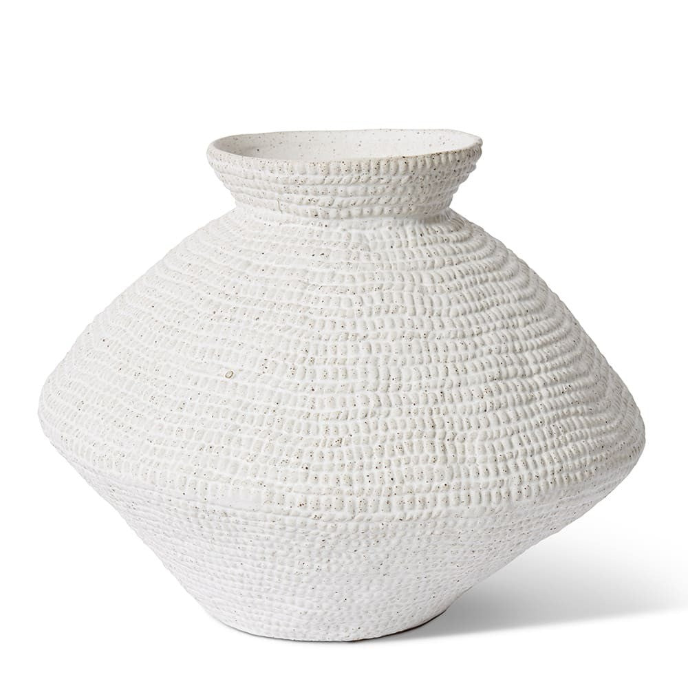 The Aurora Vase, crafted from premium ceramic, features a distinctive textured surface in a pristine white finish. Designed to elevate any space, this watertight vessel is perfect for showcasing artificial floral arrangements or fresh blooms in both residential and commercial projects. Its unique shape and high-quality craftsmanship make it an ideal centerpiece for interior designers, property stagers, and homewares retailers looking to add a touch of sophistication to their displays.