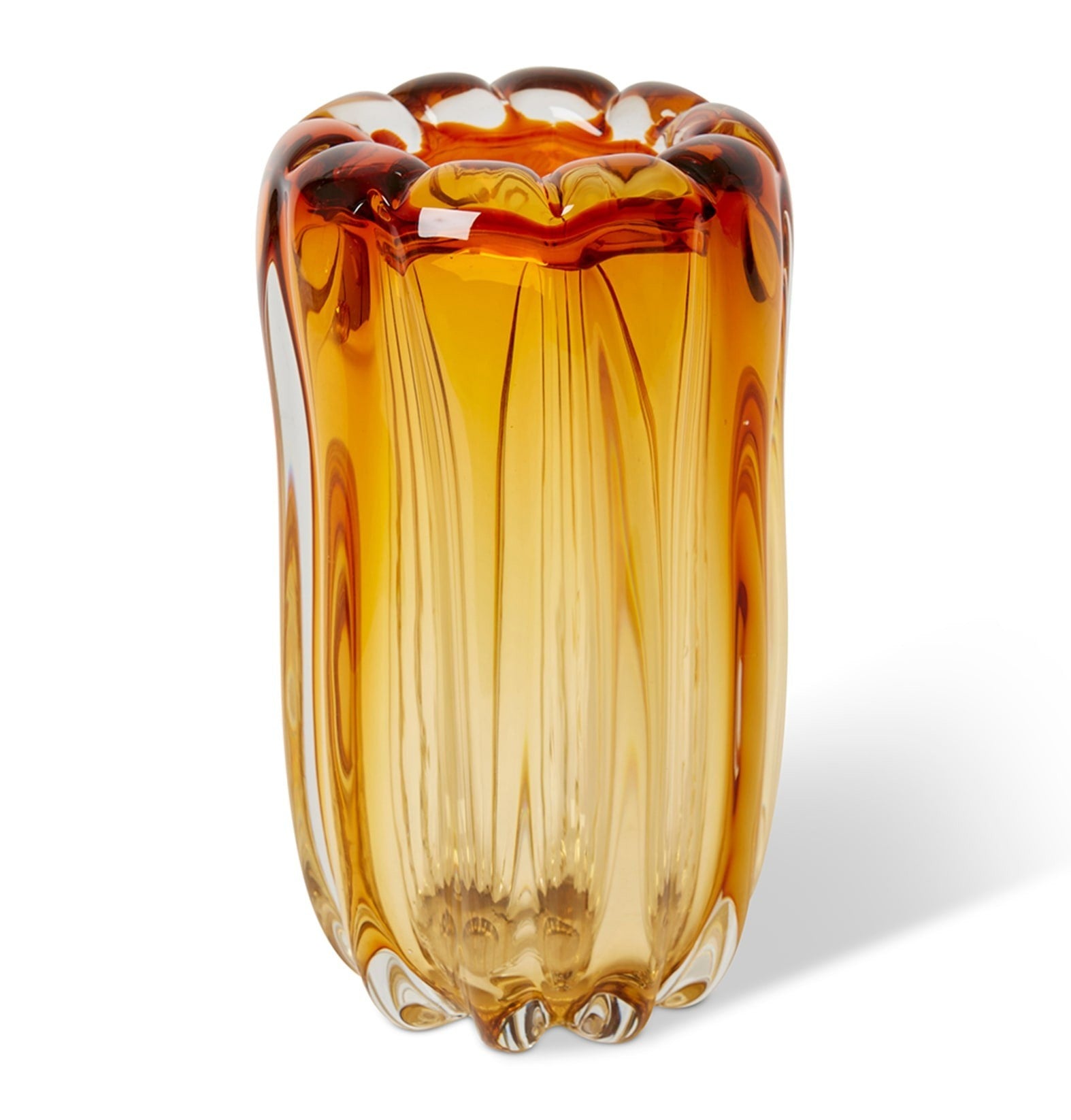 Add a pop of colour and contemporary style with the Thandie Tall Vase. Crafted from glass in a striking blend of amber and blue, it’s perfect for showcasing a single stem or styled solo as a decorative accent. A vibrant, eye-catching piece to bring depth and interest to any interior.