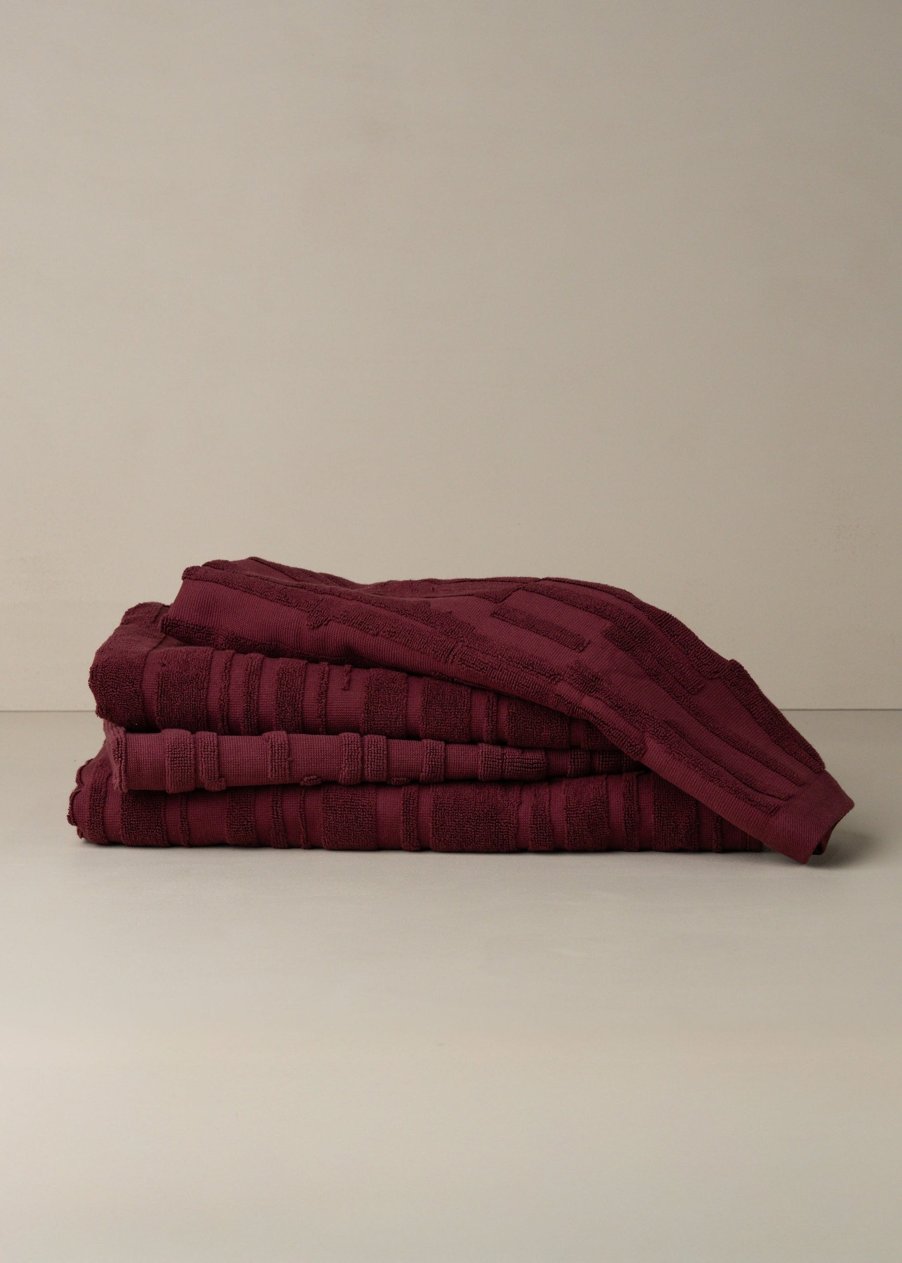 The unique pattern, designed by Saardé co-founder Verity Kizek, forms an irregular grid that creates a sculptural yet rhythmic pattern. The contrast of structured shapes with relaxed texture, finished in a timeless palette, makes these towels a considered addition to both classic and contemporary bathrooms.